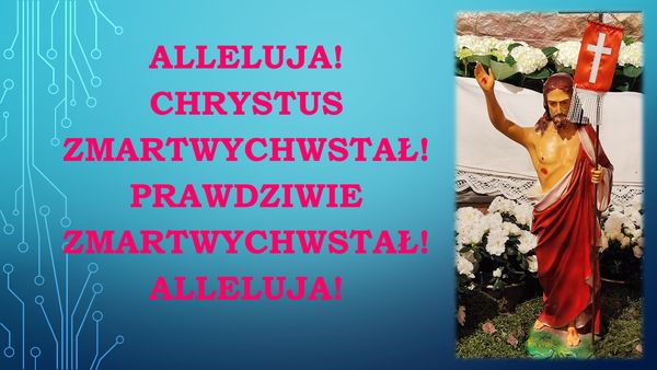 W niedzielę Zmartwychwstania Pańskiego Rezurekcja o godzinie 6. Adoracja od godziny 5. Następne Msze św. o godzinie 10,45 w kaplicy i o godzinie 12.15 w kościele parafialnym.